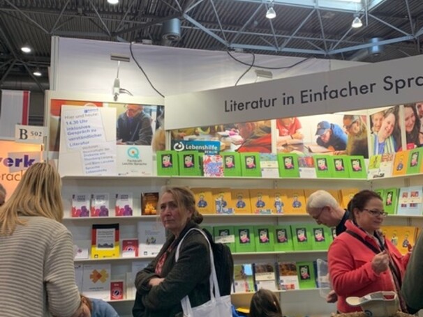 Mit der Diskussionsrunde waren wir zu Gast am Stand der Lebenshilfe Berlin, die eigene Bücher in einfacher Sprache veröffentlicht hat.